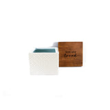 This ceramic gift box can be used for storing your needs and styling while doing it. This box has a wooden lid. Start you day encouraged with this or give to someone to remind them that they are loved!